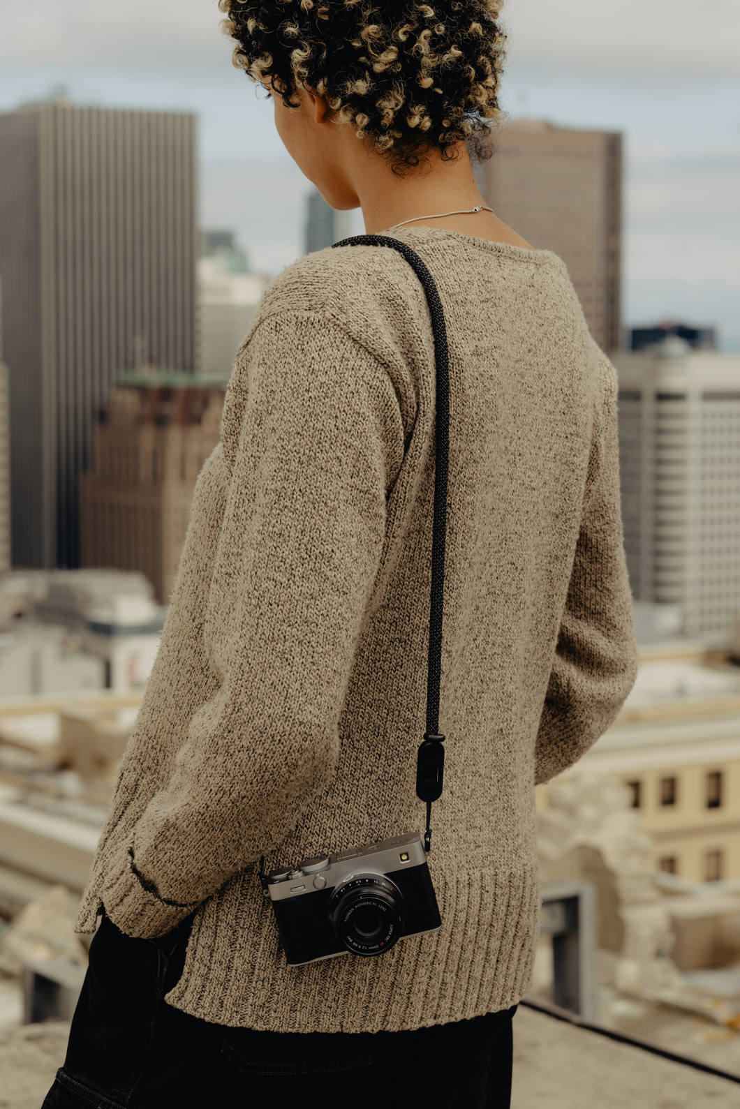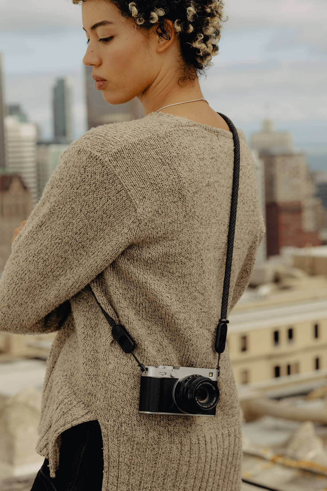Kurvvævet nylon/poly-reb afbalancerer styrke, blødhed og minimal strækning. Glasforstærkede Anchor Links forbindes på få sekunder og holder lav profil. Anodiseret aluminiumsløjfe til enkeltpunktsbæring eller opbevaring af stroppen er inkluderet i længderne til at bære på tværs af kroppen (kort, standard, lang).