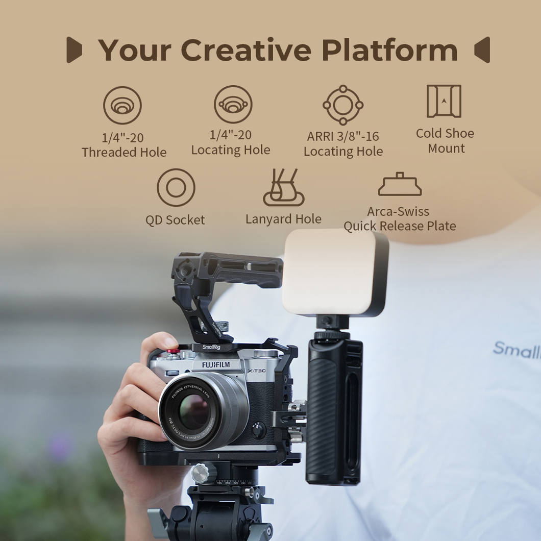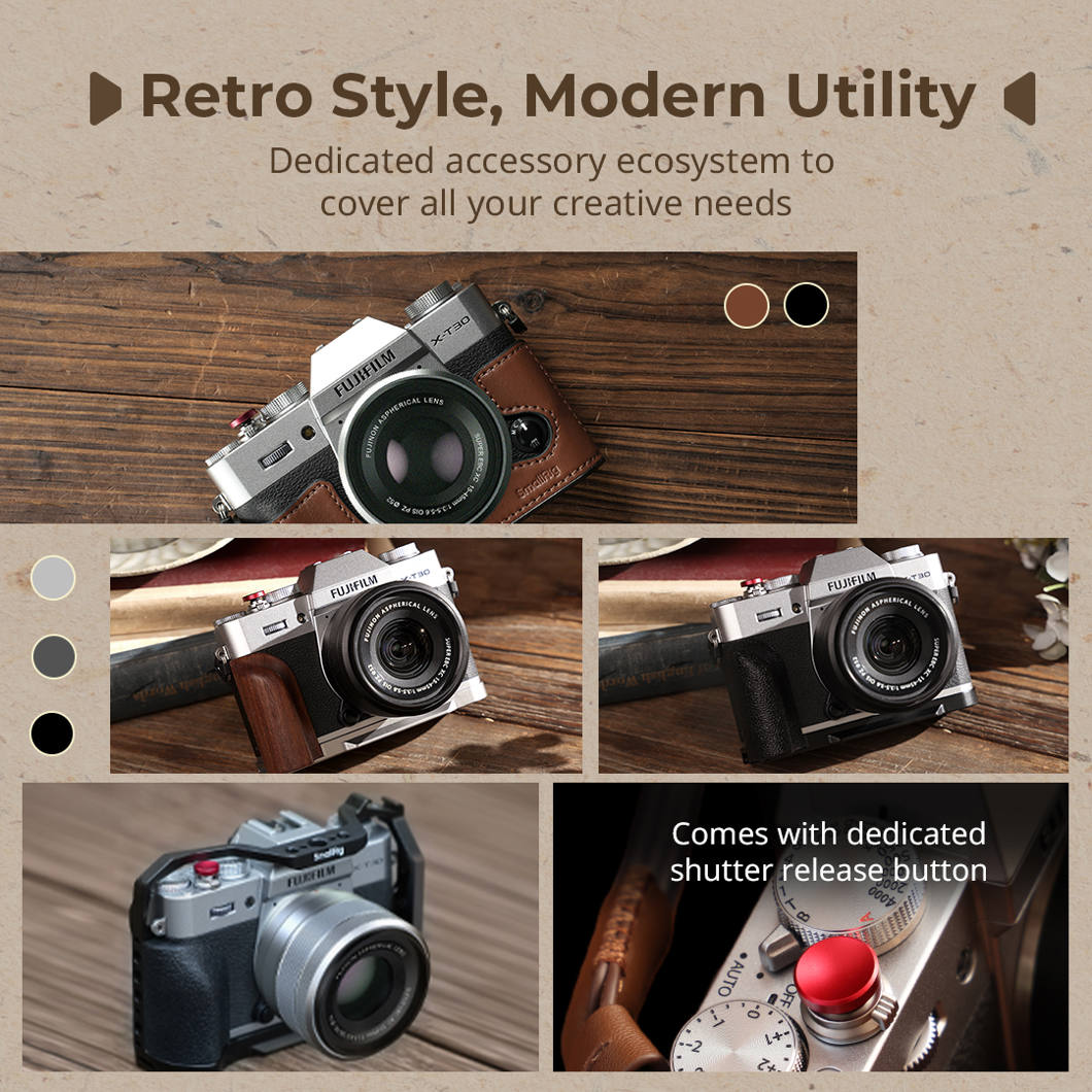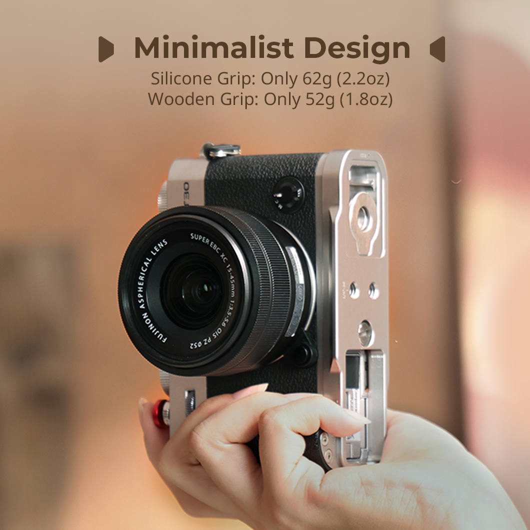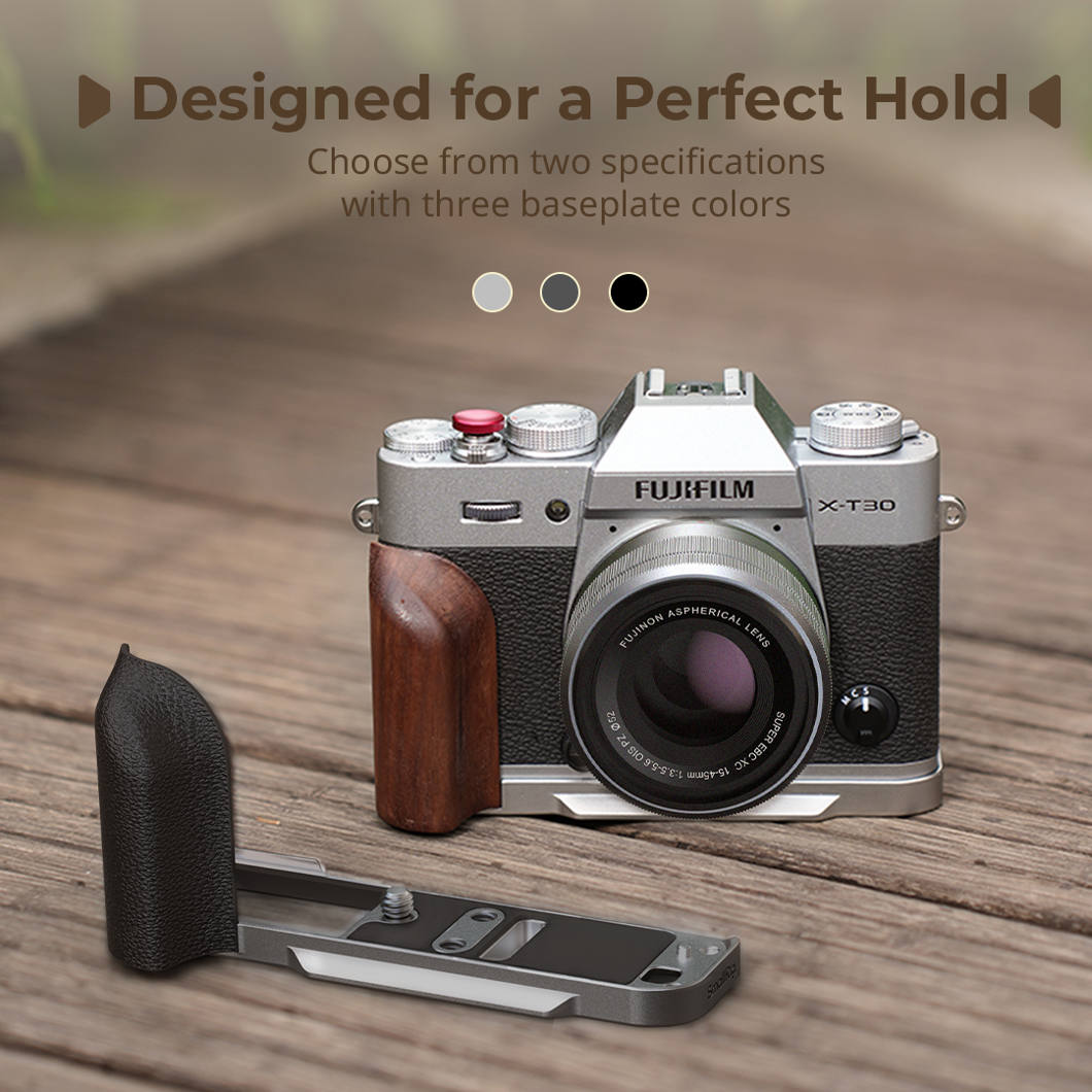 SmallRig 5667 L-Shaped Mount Plate with Wooden Handle for FUJIFILM T30 / T30 II / X-T30 III Silver