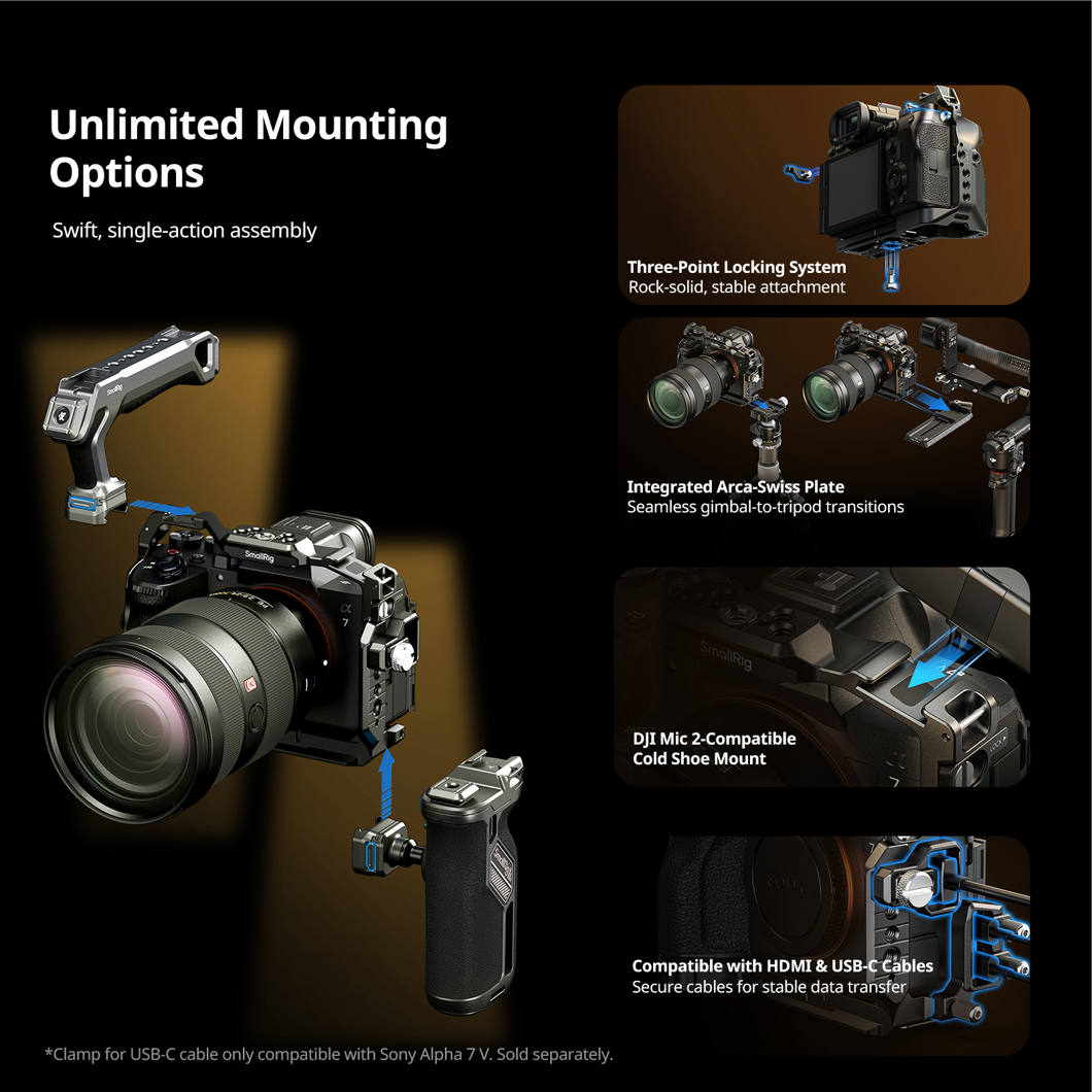 SmallRig 6062 USB-C-kabelklemme til bure til Sony Alpha 7 V