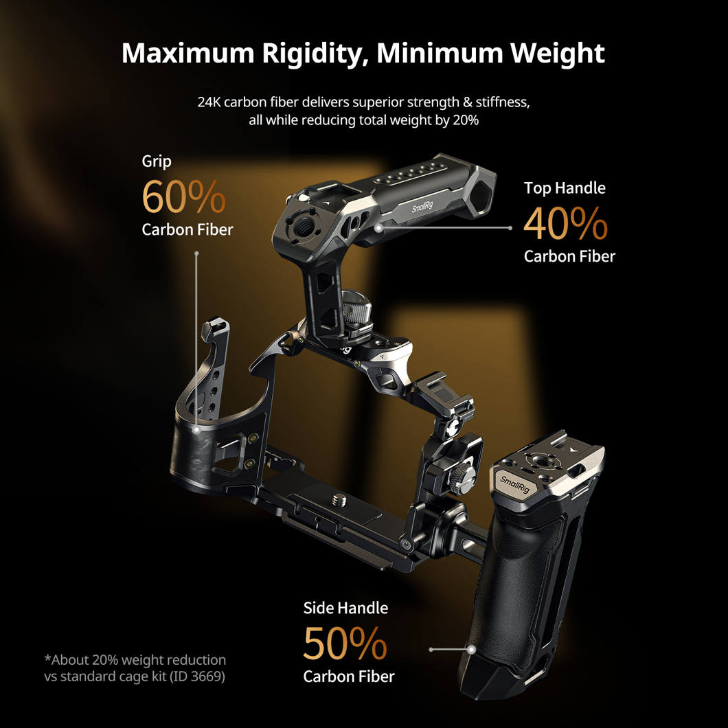 Pladen har flere 1/4"-20 gevindhuller i bunden til fastgørelse af tilbehør som trådløse skydehåndtag, mens en integreret Arca-Swiss-hurtigudløserplade sikrer problemfri kompatibilitet med Arca-type stativer, hvilket letter hurtige overgange mellem håndholdte og stativopsætninger.